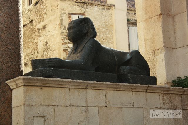 Nach so viel Geschichte „in freier Wildbahn“ wollen wir doch noch mal Näheres über die Hintergründe der Stadtentwicklung erfahren und besichtigen das Stadtmuseum im Diokletianspalast. Hier ist eingängig dargestellt, wie genau sich der römische Palast in die quirlige Stadt Split verwandelt hat. Außerdem müssen wir unbedingt noch mal auf den antiken Treppenstufen des Vestibüls im Café Luxor einen Cappucchino trinken. Das ist fast doppelt so teuer wie vorne an der Riva, aber dafür können wir der mehr als fünftausend Jahre alten Sphinx zuprosten, die Diokletian schon als Antiquität einschiffen ließ.