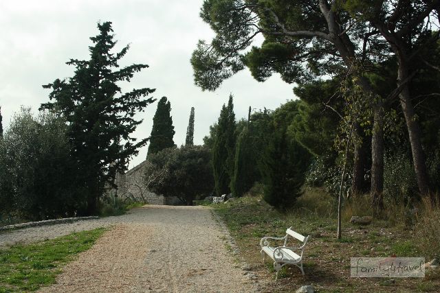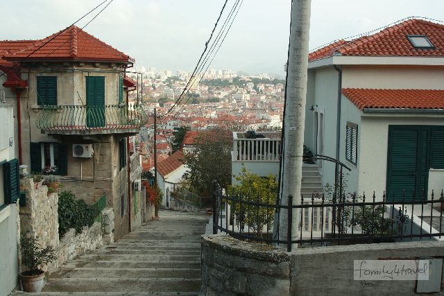 Westlich zwischen Altstadt und Meer befindet sich der Marjan, ein kleiner Berg mit Park, die grüne Lunge der Stadt. Viele, aber auch nicht zu viele Treppenstufen führen dem Gipfelkreuz entgegen, das zu erreichen junge Bergsteiger mit Stolz erfüllt. Den Weg säumen erst malerische, teils verfallende Häuschen mit Gärten voller Zitronenbäume, später ein Wald, in dem sich zwei Einsiedeleien und eine kleine Kapelle verstecken. Und immer wieder glitzert unter uns das Mittelmeer. Auf etwas mehr als halber Höhe erreichen wir den Spielplatz, der mit seinen naturnahen Kletterkonstruktionen ganz nach dem Geschmack der Jungs ist. Auch für kleinere Kinder ist einiges dabei. Und der Eingang zum Zoo befindet sich hier. Den lassen wir allerdings aus, da wir nur Schlechtes darüber gehört haben.