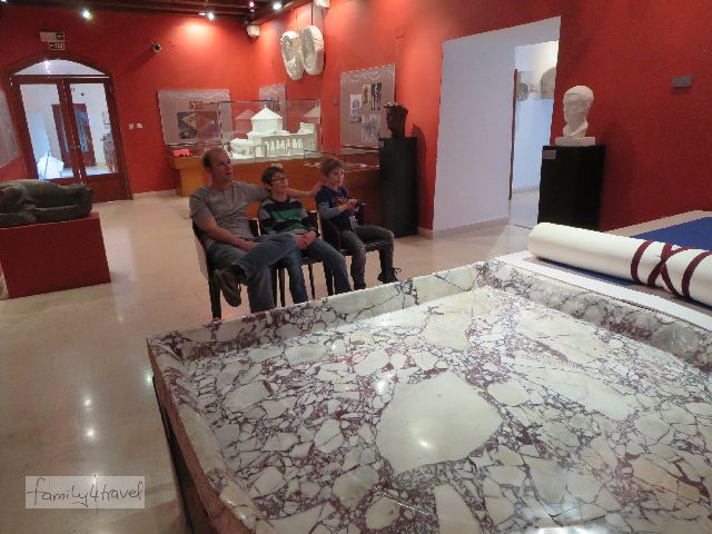 family4travel im Genuss-Modus: Auf den antiken Stufen des Vestibyls gönnen wir uns einen Cappuccino bzw. eine heiße Schokolade.