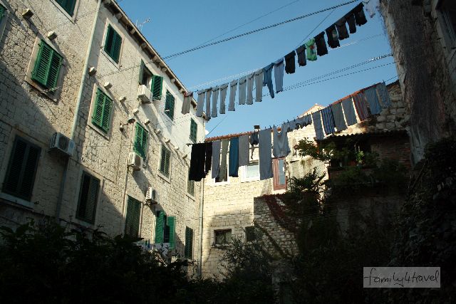 Rund 200.000 Einwohner zählt Split und ist damit die zweitgrößte Stadt des Landes. Davon bekommen wir allerdings wenig mit. Denn obwohl wir zwischen lauter Kroaten wohnen und mit dem Motiv des Beinahe-Einheimischen so gerne kokettieren, sind wir in Wirklichkeit natürlich wie jeder Tourist ganz auf die Altstadt fixiert. Die umfasst ein sehr übersichtliches Areal direkt am Meer. Aufgrund ihrer baulichen Unversehrtheit steht sie auf der Weltkulturerbe-Liste der Unesco. Und ohne unser Auto auch nur einen Tag lang vom hart erkämpfen kostenlosen Parkplatz zu bewegen, halten wir uns ohne Probleme eine volle Woche hier beschäftigt.