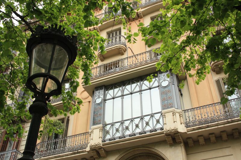 Von der S-Bahn-Station Plaça de Catalunya laufen wie die Rambla entlang, die breite Flanierstraße Barcelonas. Unten buhlen Geschäfte und Boutiquen aller Couleur um Kundschaft, aber der Blick nach oben lohnt sich noch viel mehr als der in die Schaufenster. Manche Fassade ist extravagant ausgestaltet.