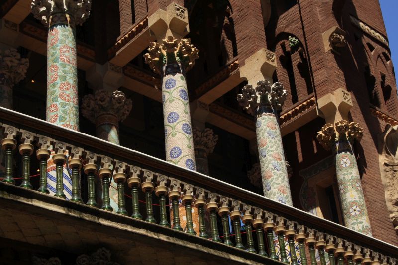 - Die bunten Säulen befinden sich am Palau de la Musica, ebenfalls ein Feuerwerk des Modernisme.