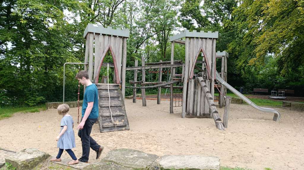 Der thematisch passende Sparrenburg-Spielplatz gehört zu den schönsten Bielefelder Spielplätzen, die wir kennen.