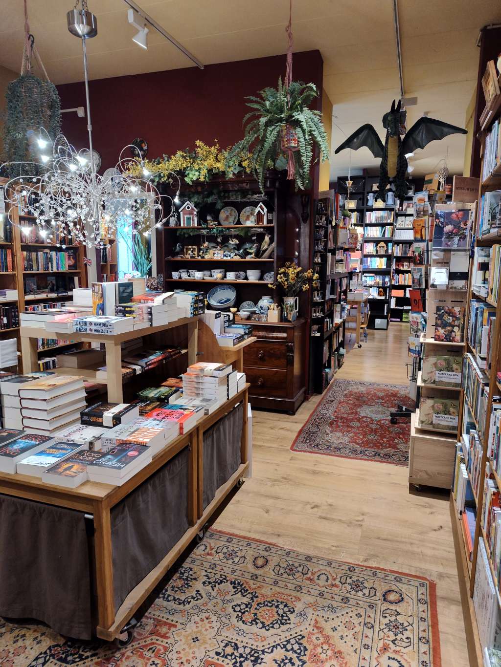Der Boekhandel Oisterwijk hat gerade die Auszeichnung des schönsten Buchladens der Niederlande gewonnen. Das verkündet ein Schild, das vor dem Eingang um den Hals einer lebensgroßen Giraffe hängt. Innen empfangen uns natürlich meterweise Regale voller Literatur – aber auch Teppiche, Kronleuchter, Palmen, eine Spielecke, ein komplettes Wohnzimmer und ein begehbarer Tresor. Unter anderem. Wer Niederländisch nicht auf Bücher-lese-Niveau beherrscht, ist hier keinesfalls sicher vor einem Kaufrausch. Zum einen gibt es reichlich englischsprachige Literatur. Zum anderen stehen auch unzählige Karten, Spiele, Geschenkartikel und andere Kinkerlitzchen zum Verkauf. (Wir erliegen der Versuchung auf ganzer Linie.)