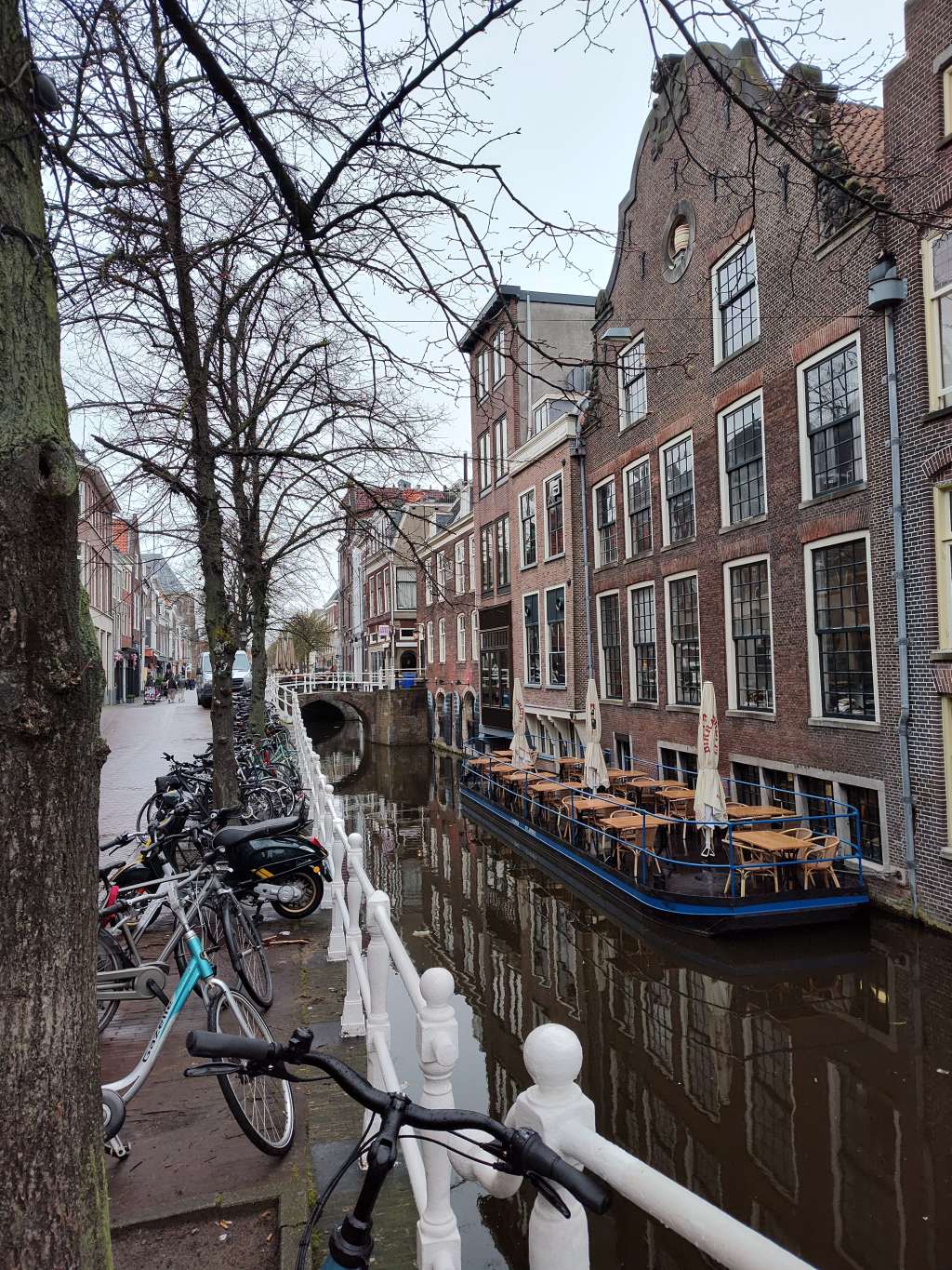 Für unsere durchaus nette Radtour von etwa 14 km pro Strecke brauchen wir eine knappe Stunde. Der Radweg ist wieder bestens ausgebaut. Während die Parkplätze in der Altstadt von Leiden rar und teuer sind, parken wir unsere Räder unbehelligt an der Pieterskerk.