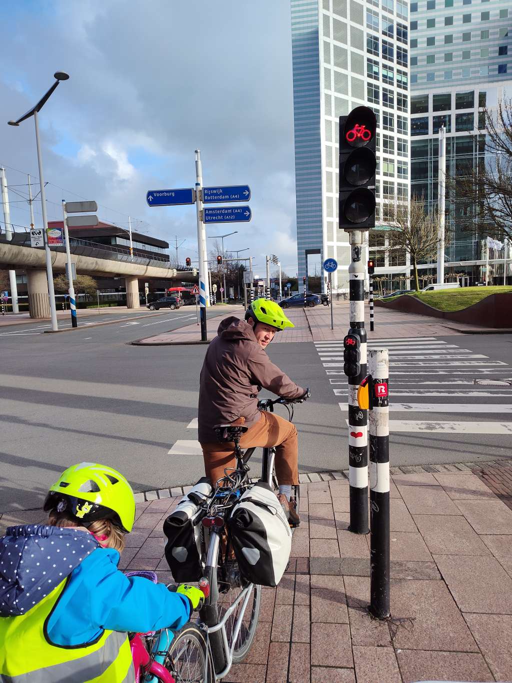 Natürlich ist es aber ein sehr schöner Moloch. Rund sieben Kilometer fahren wir von unserer Unterkunft durch überraschend viel Grün. Die Fahrt geht durchgängig über Fahrradwege. In den Niederlanden gibt es dafür eigene Ampeln, die auch bevorzugt geschaltet werden gegenüber dem Autoverkehr.