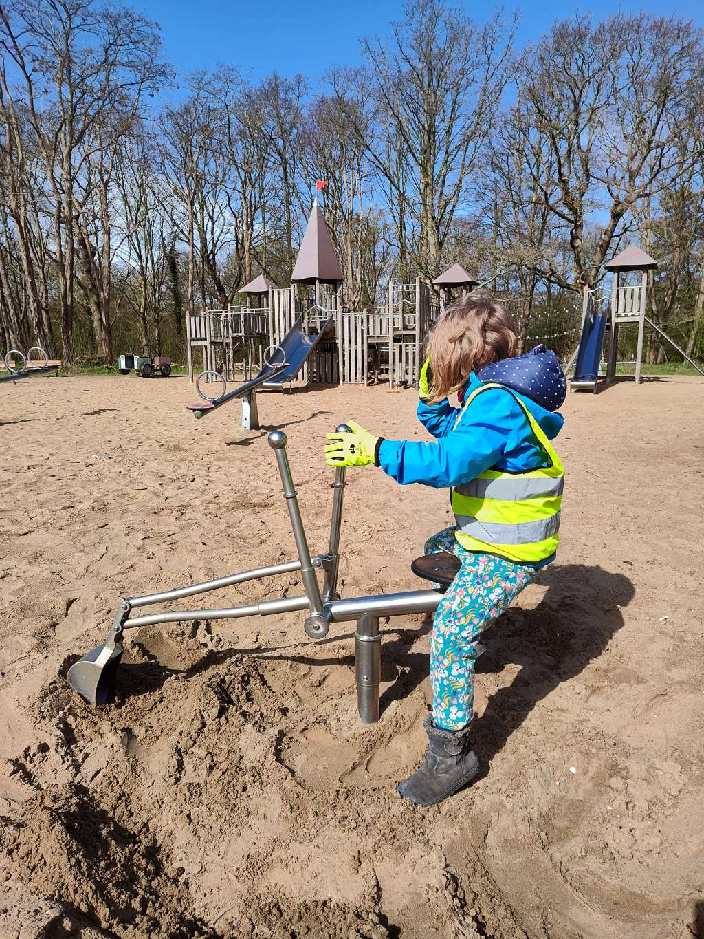Wären wir länger in Den Haag und hätten wir wärmeres Wetter, könnten wir einen ganzen Tag mit einer Spielplatz-Safari verbringen. Am Grüngürtel reihen sich mehrere richtig Tolle in guter Fahrradreichweite aneinander. So aber entscheiden wir uns für einen einzigen: den Zandspeeltuin am Ary-van-der-Spuyweg. Der ist vergleichsweise nah dran am Zentrum und so cool, dass wir alle drei ein vergnügliches Stündchen an den Spielgeräten verbringen.
