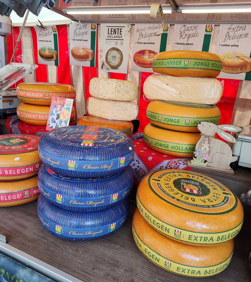 Stattdessen bummeln wir durch die Altstadtgassen und hinüber zur zentralen Gracht. Dort ist gerade Wochenmarkt (jeden Mittwoch und Samstag). Wir kaufen etwas Käse. Dann schlendern wir weiter durch die Fußgängerzone.