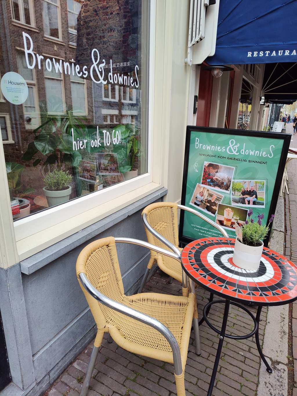 Schließlich landen wir bei „Brownies & Downies“. Die niederländische Institution hat über 20 Filialen. Dort bietet sie nicht nur hervorragende Brownies in mehreren Varianten, sondern vor allem auch Menschen mit Behinderungen einen interessanten Arbeitsplatz. Tolles Konzept!