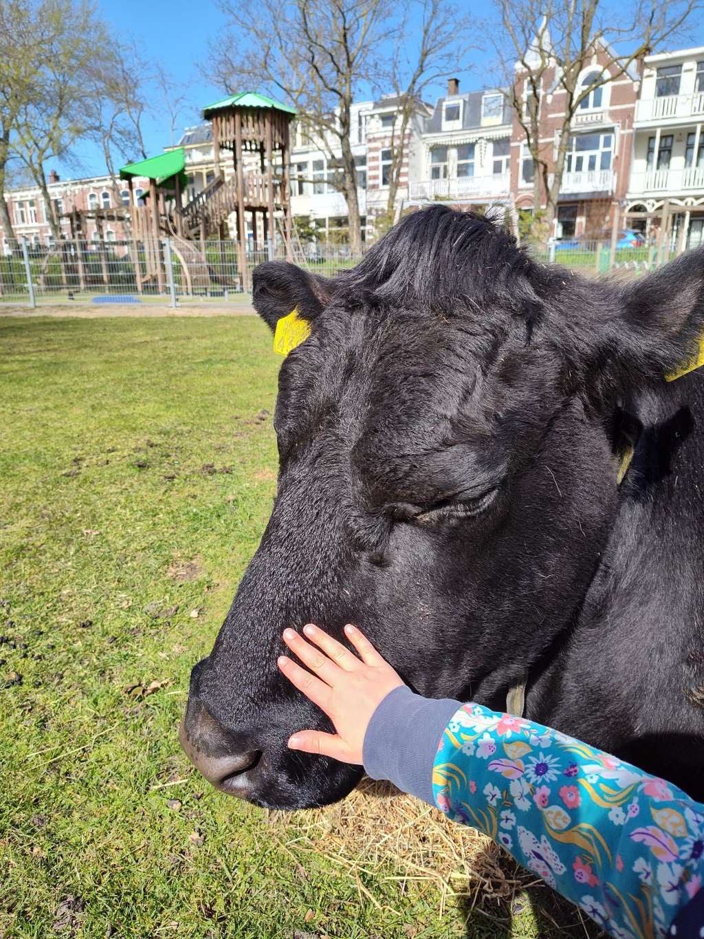 Dann wird es doch noch richtig nett! Franka wünscht sich einen Spielplatz. Ich habe einen rausgesucht, der mehr ist als das. Die Boerderij ´t Waaygat ist einer dieser in den Niederlanden so beliebten Kinderbauernhöfe, die es in vielen Städten und Urlaubsorten gibt. Der in Scheveningen ist der schönste, den wir bisher kennengelernt haben. Komplett kostenlos dürfen wir zu den Schafen, Ziegen und Rindern auf die Weide. Vor allem die Kühe sind tiefenentspannt und lassen sich bereitwillig von uns streicheln.