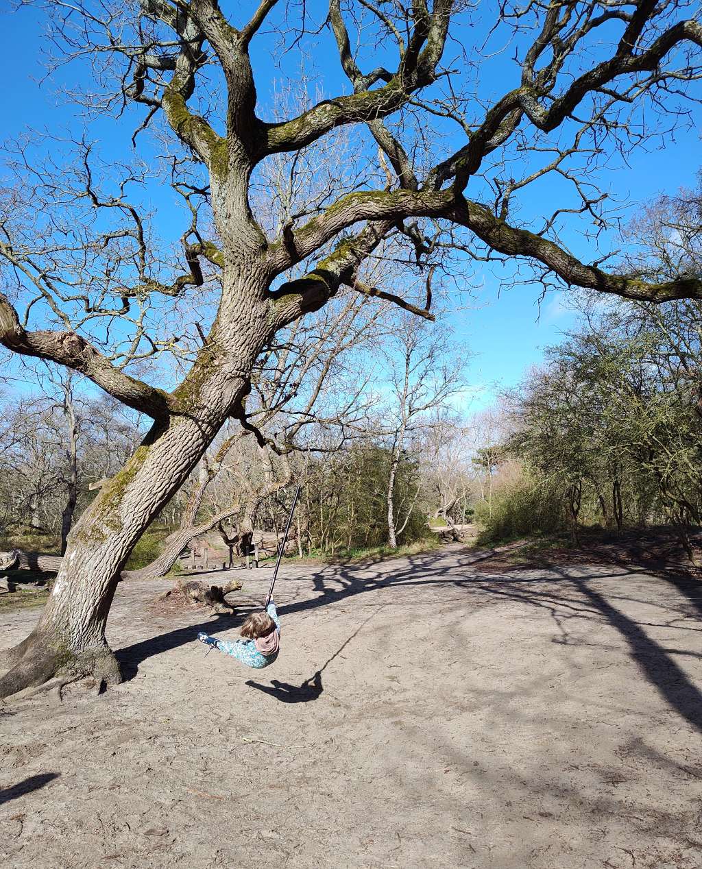 Der krönende Abschluss unseres Tages im Grünen ist der Spielwald Monkeybos. In einem malerischen Eichenwald – selten in Holland und deshalb zurecht Teil des Nationalparks – zieht sich ein Naturspielplatz quer durch die Landschaft.