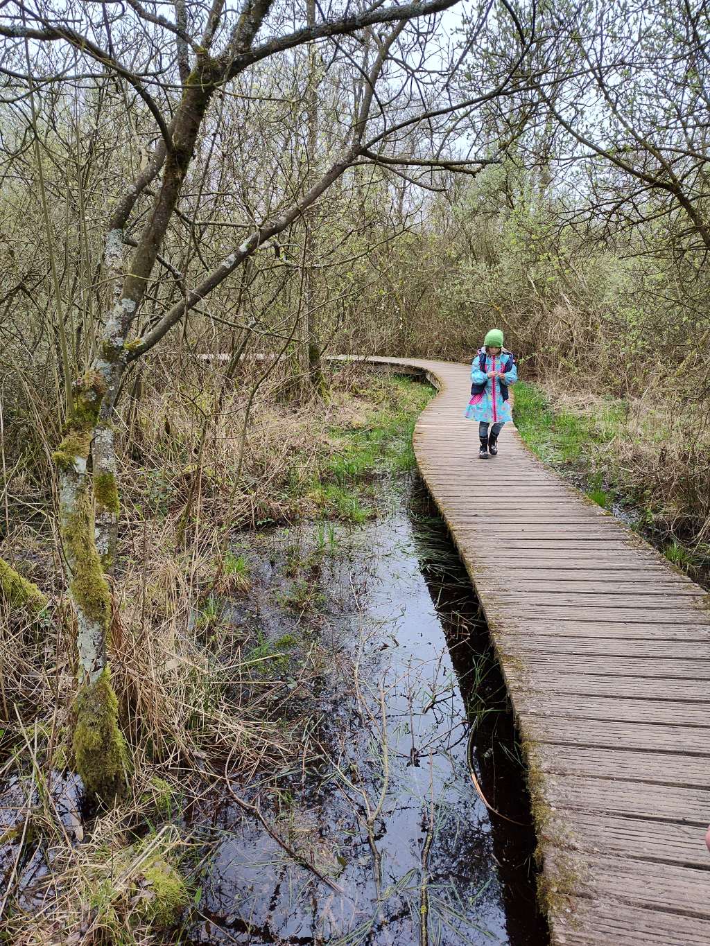 Tipp: Geht unbedingt zuerst über die Brücke, denn der Hinweg ist schnurgerade und fordert die Motivation jüngerer Wandernder. Zurück geht es kurvig erst durch Wiesen, dann über einen traumhaften Holzbohlenweg durch Sumpf und Moor.