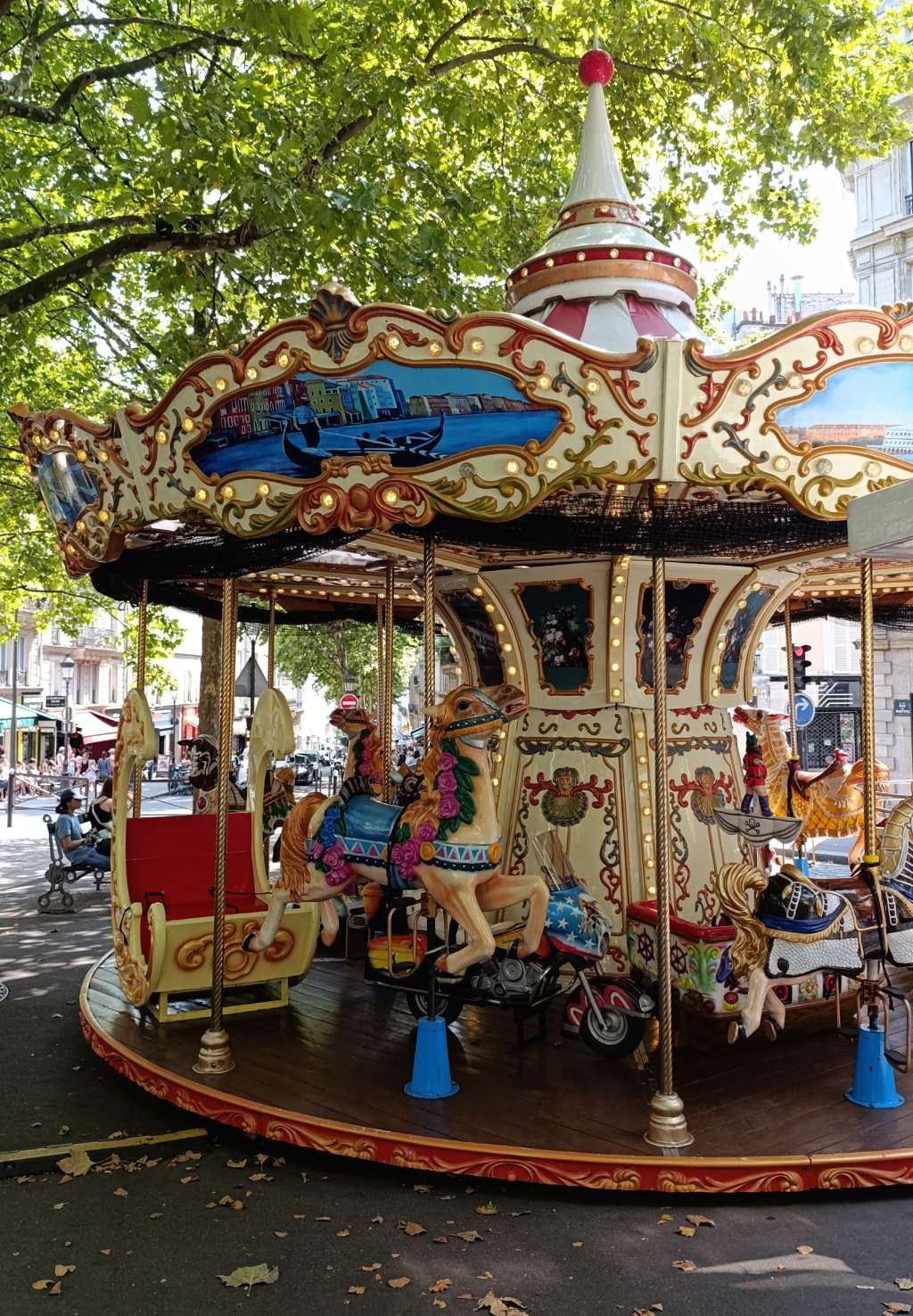 Was mir vorher nicht recht klar war: Gediegene Kinderkarussells im Look des 19. Jahrhunderts sind sehr französisch. Jede Stadt mit etwas Tourismus scheint sie zu haben. →Honfleur zum Beispiel, und →San Sebastian (das in Spanien liegt, wie ich gerade festgestellt habe, aber nur knapp). Paris hat selbstverständlich jede Menge. Manche sind richtig alt. Eines ist sogar in einem bekannten Gedicht von Rainer Maria Rilke verewigt.