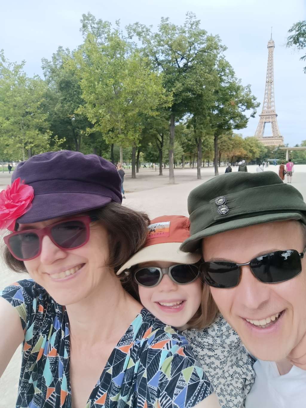 Drei Viertel der Reisecrew: Lena, Franka, Martin. Es fehlt der Teenager Silas. Aber der Eiffelturm ist in diesem Kontext wichtiger. :)