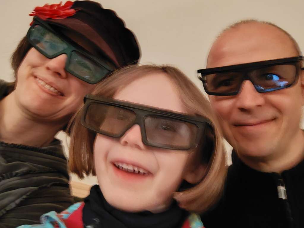 Hoffnungslos unscharf, aber zum Thema 3D-Film passts. :) Das sind wir, by the way: Lena, Franka, Martin.
