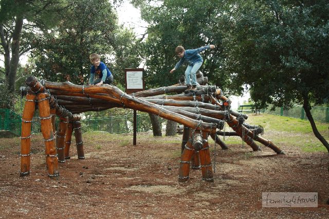 Westlich zwischen Altstadt und Meer befindet sich der Marjan, ein kleiner Berg mit Park, die grüne Lunge der Stadt. Viele, aber auch nicht zu viele Treppenstufen führen dem Gipfelkreuz entgegen, das zu erreichen junge Bergsteiger mit Stolz erfüllt. Den Weg säumen erst malerische, teils verfallende Häuschen mit Gärten voller Zitronenbäume, später ein Wald, in dem sich zwei Einsiedeleien und eine kleine Kapelle verstecken. Und immer wieder glitzert unter uns das Mittelmeer. Auf etwas mehr als halber Höhe erreichen wir den Spielplatz, der mit seinen naturnahen Kletterkonstruktionen ganz nach dem Geschmack der Jungs ist. Auch für kleinere Kinder ist einiges dabei. Und der Eingang zum Zoo befindet sich hier. Den lassen wir allerdings aus, da wir nur Schlechtes darüber gehört haben.